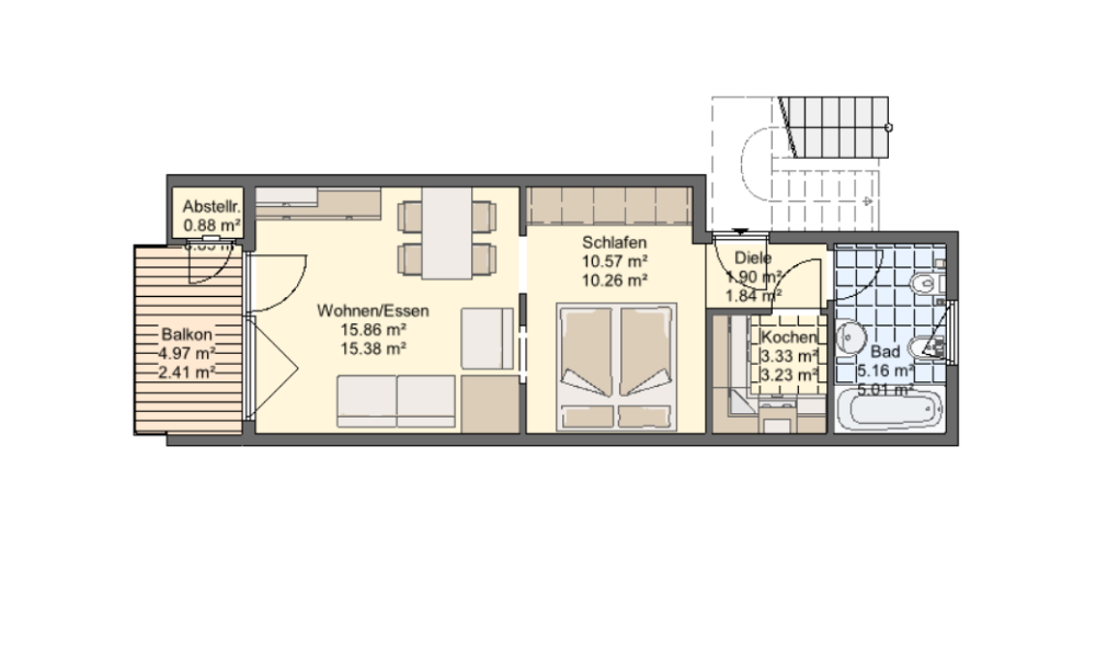 Balkon mit Weitblick: Genießen Sie Ihren Kaffee in der Morgensonne. Der praktische Abstellraum direkt am Balkon hält Ordnung.