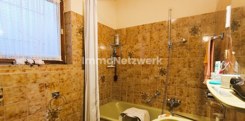 - Badausstattung: Badewanne, Fenster, Bidet